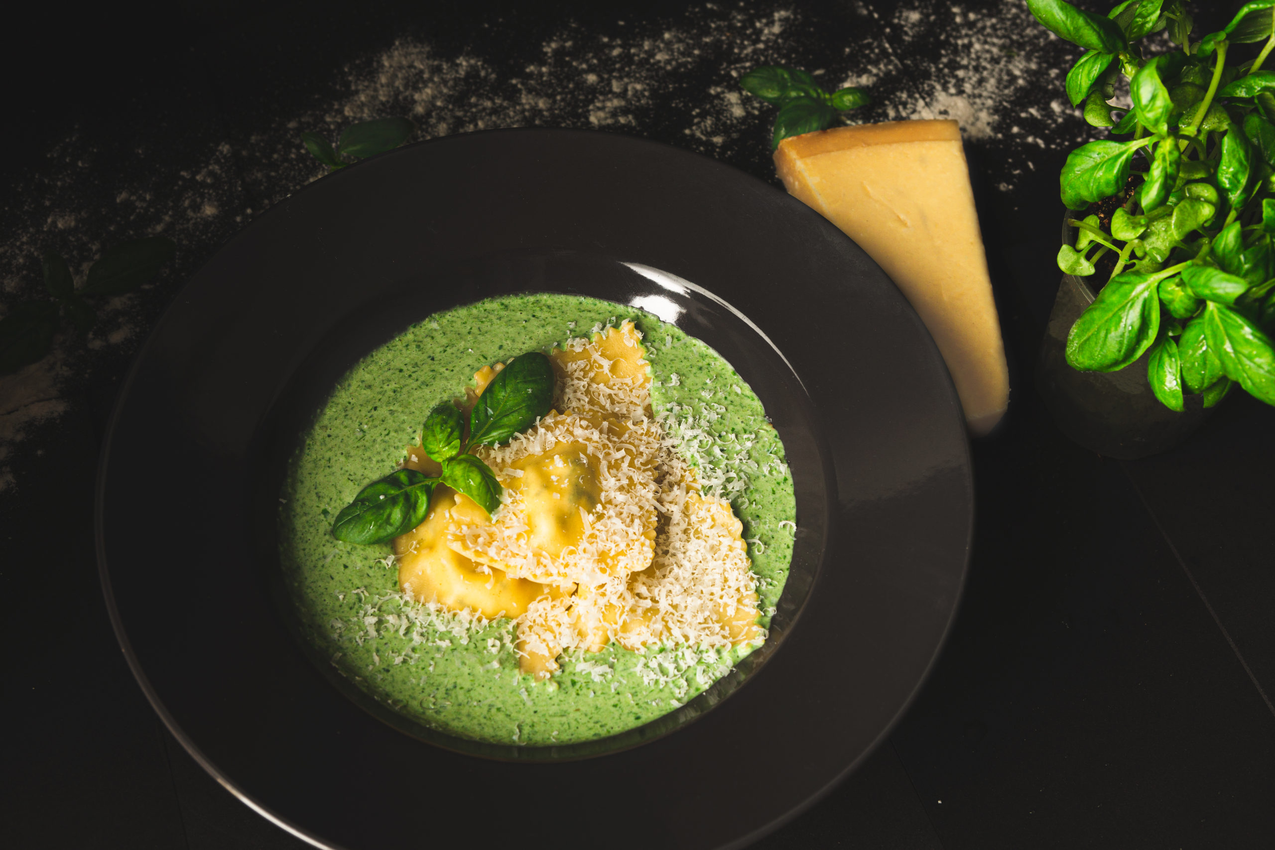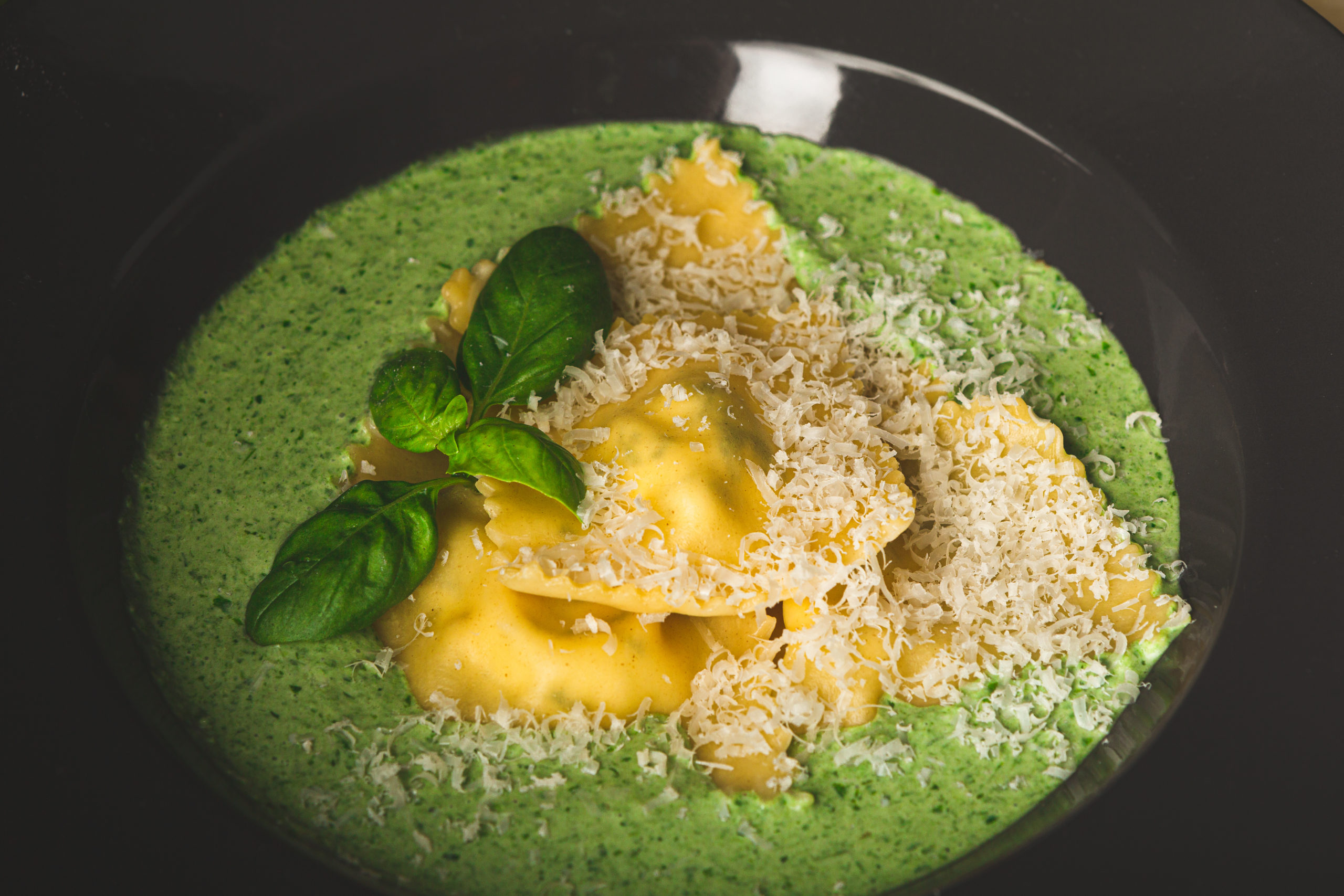 Ravioles fromages frais basilic x crème de mâche