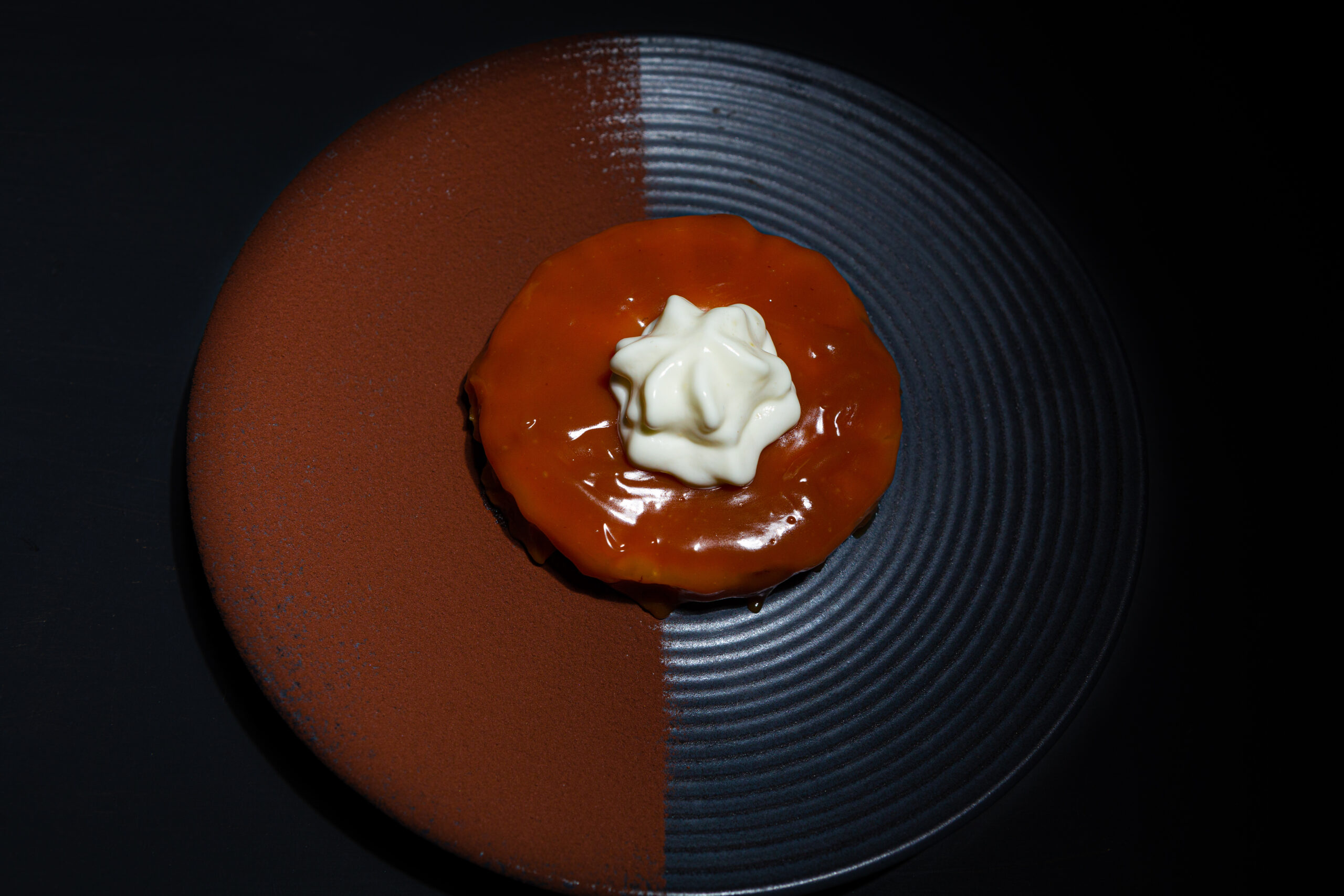 Suggestion de dressage : Vous pouvez servir ce dessert en saupoudrant l'assiette de cacao en poudre et avec de la crème chantilly en bouchant le centre de l'ananas pour plus de gourmandise.