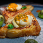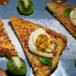 J’ai revisité le pain perdu (qui pour le coût est une brioche perdue ici) en l’accompagnant d’une crème composée de 2 fruits, l’orange et le fruit de la passion, qui vous donneront le coup de peps nécessaire pour attaquer la journée.