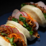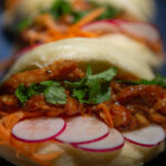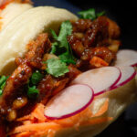 Assemblez les bao buns avec la quantité de garniture que vous souhaitez pour chaque pain et ajoutez la coriandre.