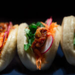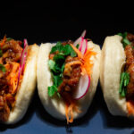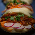 L’origine du bao bun qui veut dire « pain coupé » est chinoise mais s’est rapidement étendu dans tout l’Asie. Ce pain leger est très versatile et peut être garni avec ce que vous voulez. Traditionnellement c’est avec des préparations au boeuf, porc, poulet ou même aux crevettes. Ces petits pains sont cuits à la vapeur dans des paniers ce qui donne cette parfaite texture.