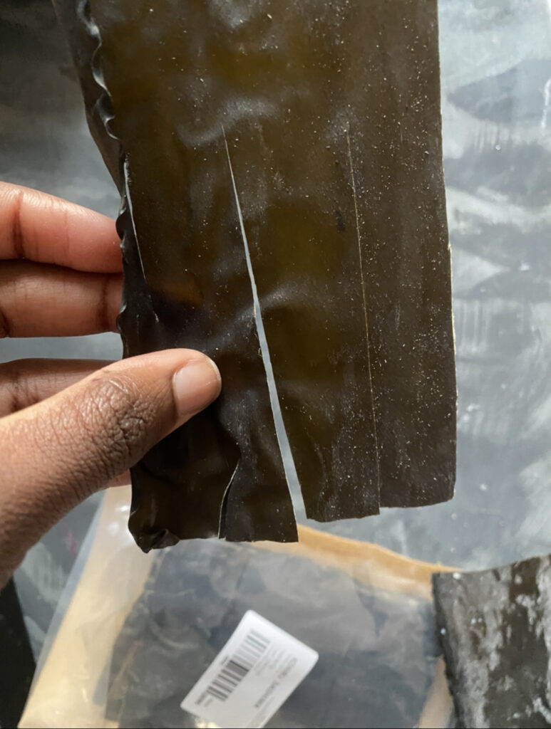 Essuyez le kombu avec du papier absorbant légèrement mouillé.