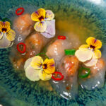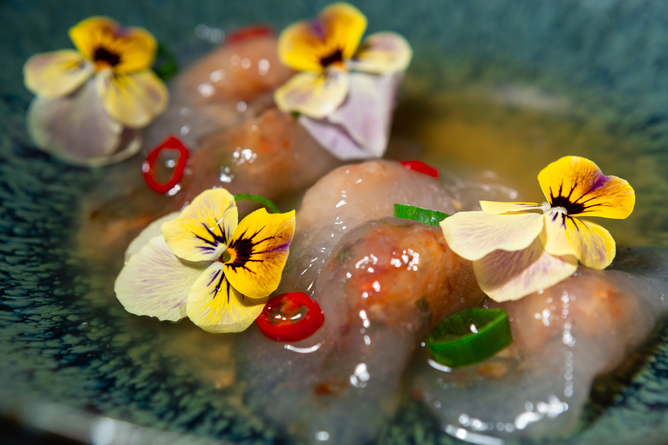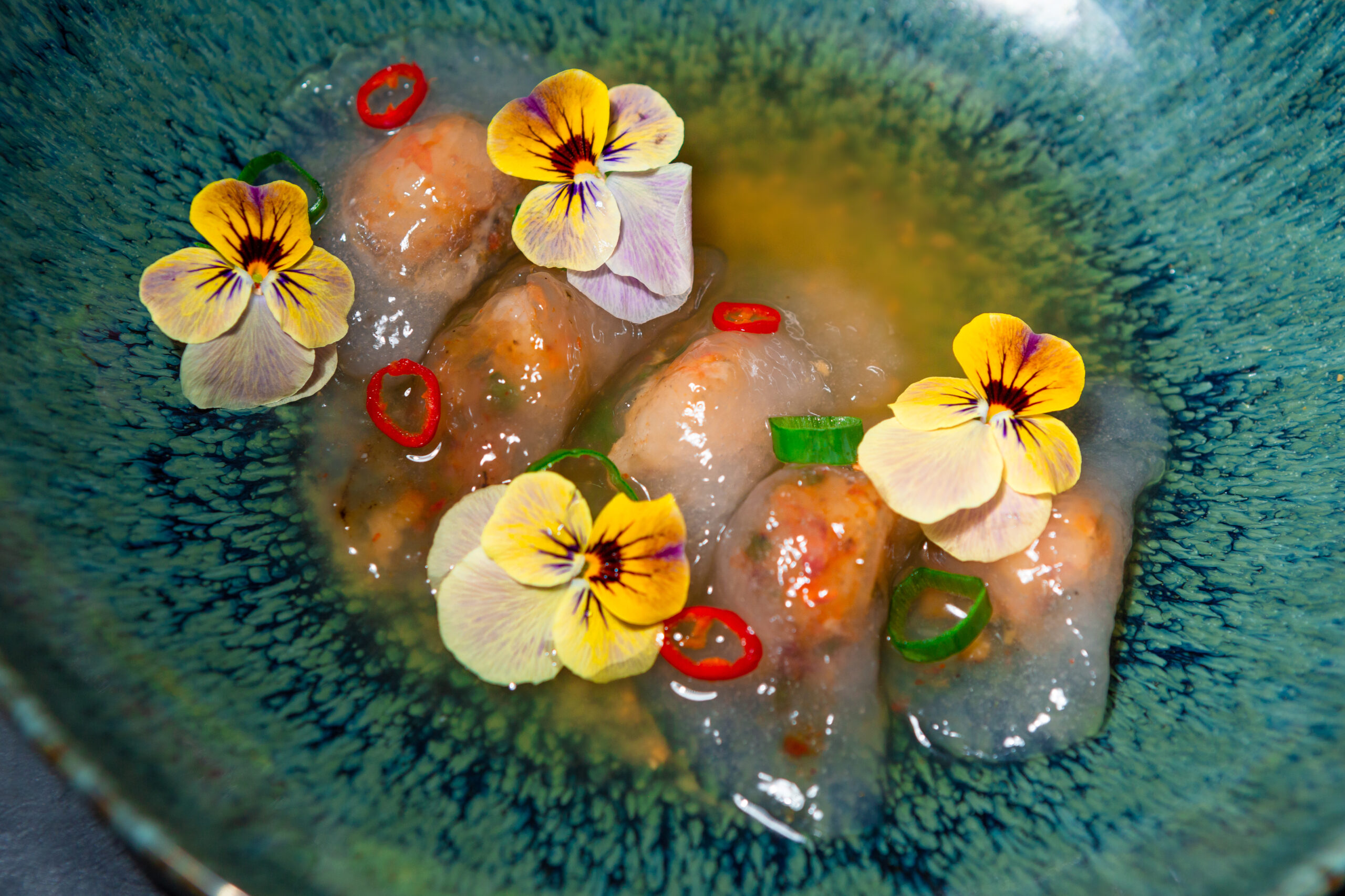 Il y a également une fusion de la cuisine car les 2 parties de la recette sont originaires de 2 pays d’Asie. On a d’abord les ravioles de crevettes plus communément Bánh Bột Lọc, ce met vietnamien est aussi savoureux qu’esthétique. Puis nous avons le bouillon dashi qui un bouillon japonais riche en saveur qui accompagne de nombreux plats.