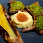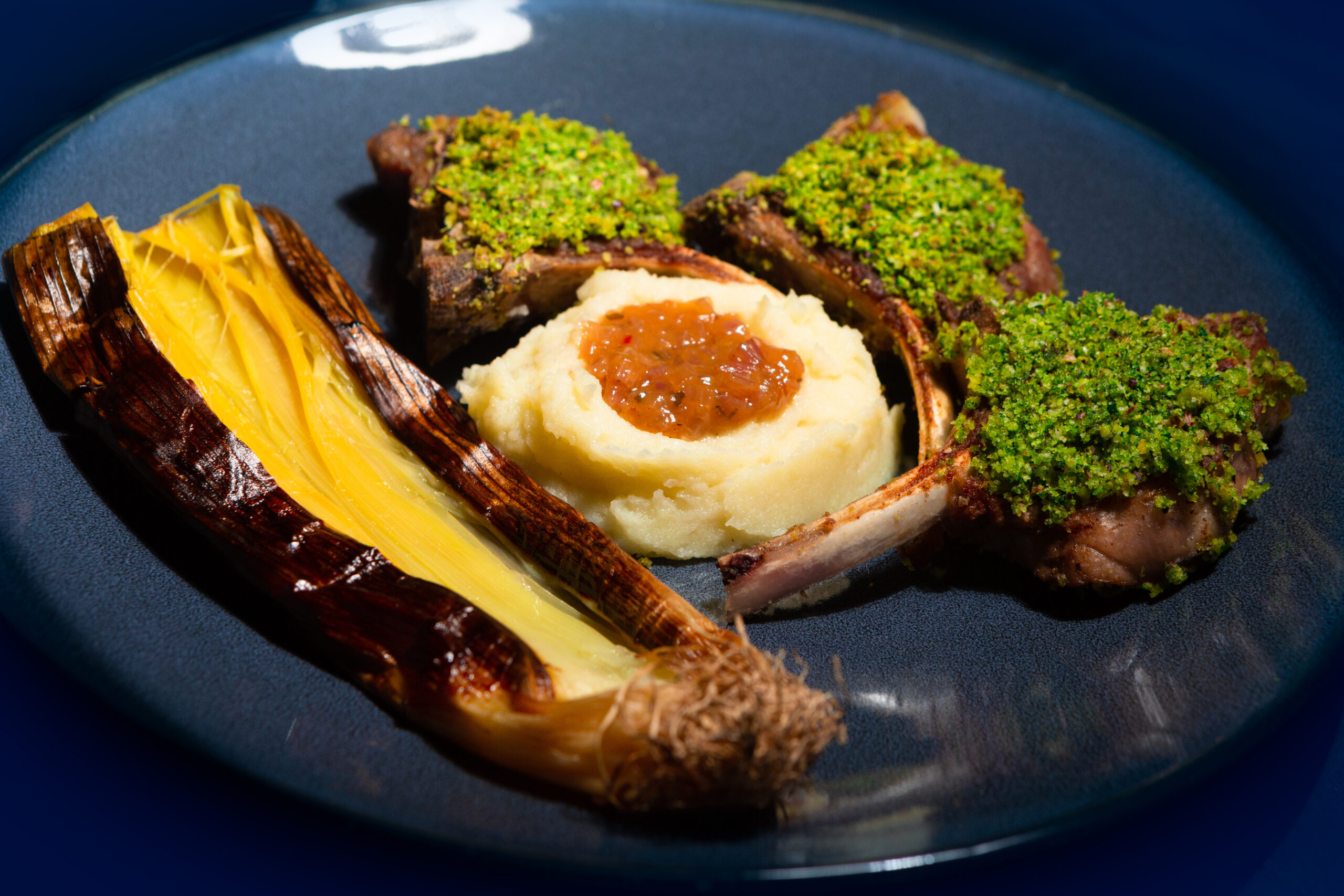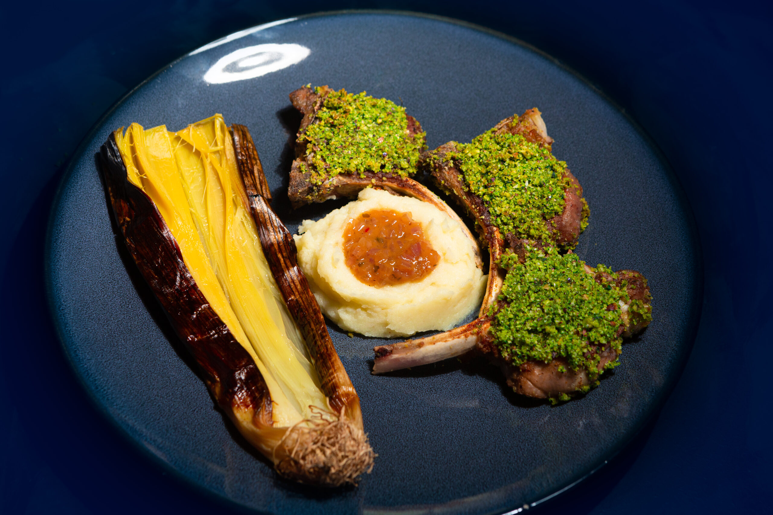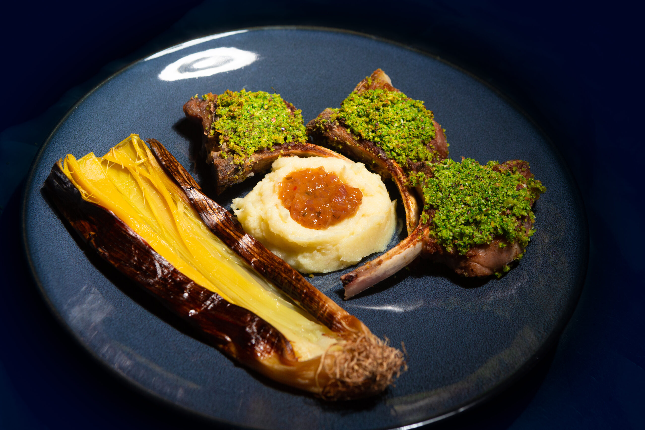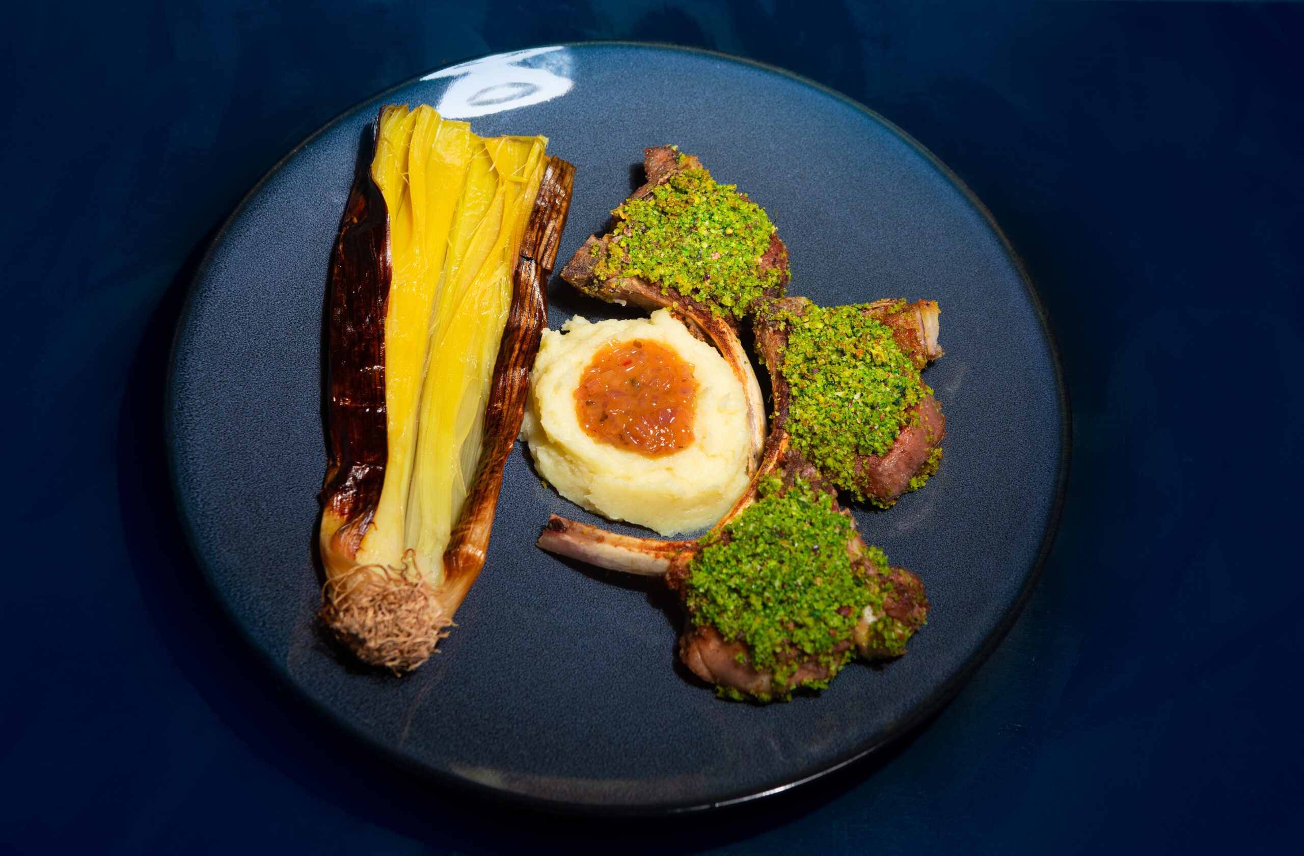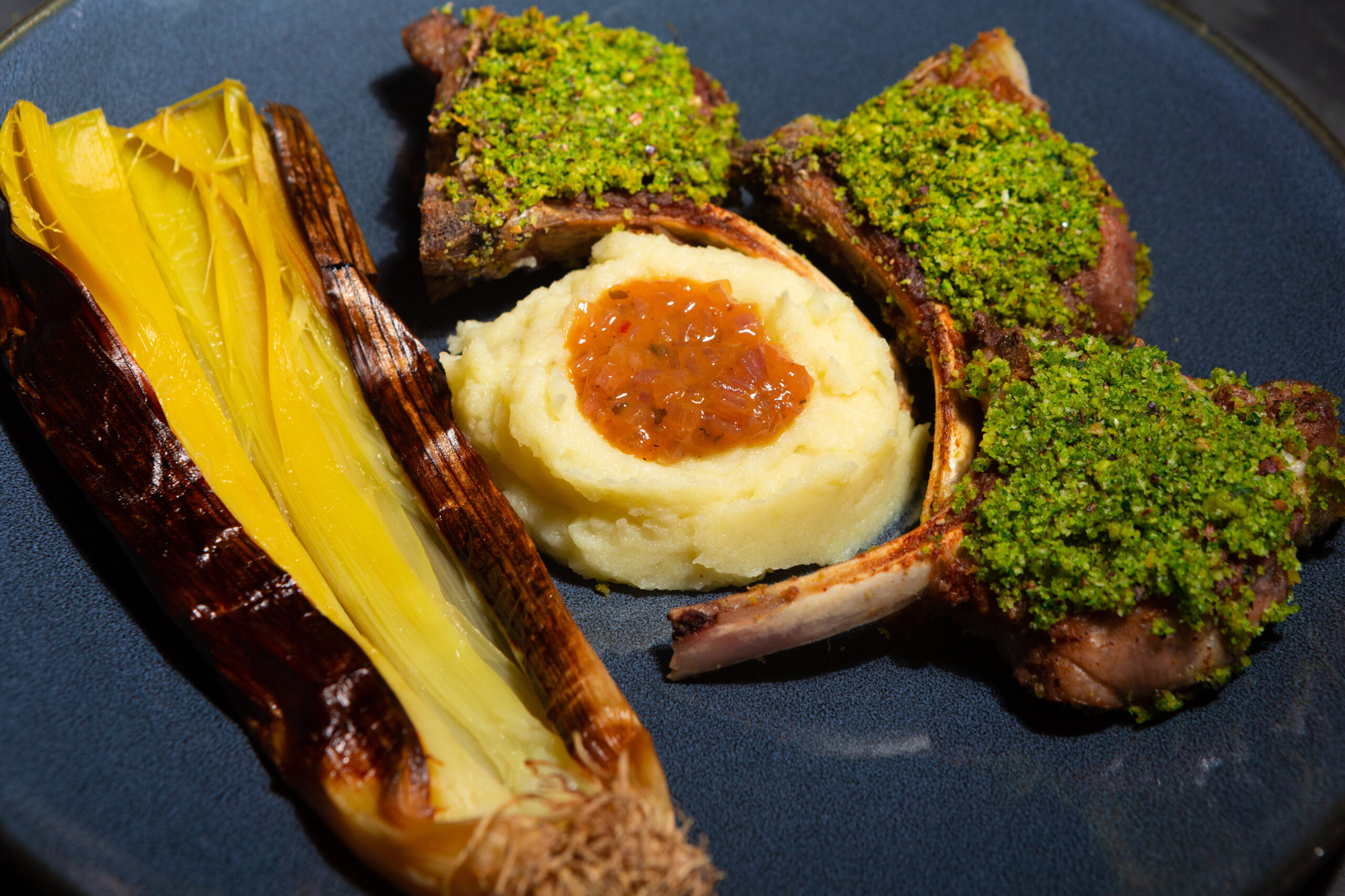 Côtelettes d’agneau en croute de pistache-persil x Sauce échalote & Poireau brûlé