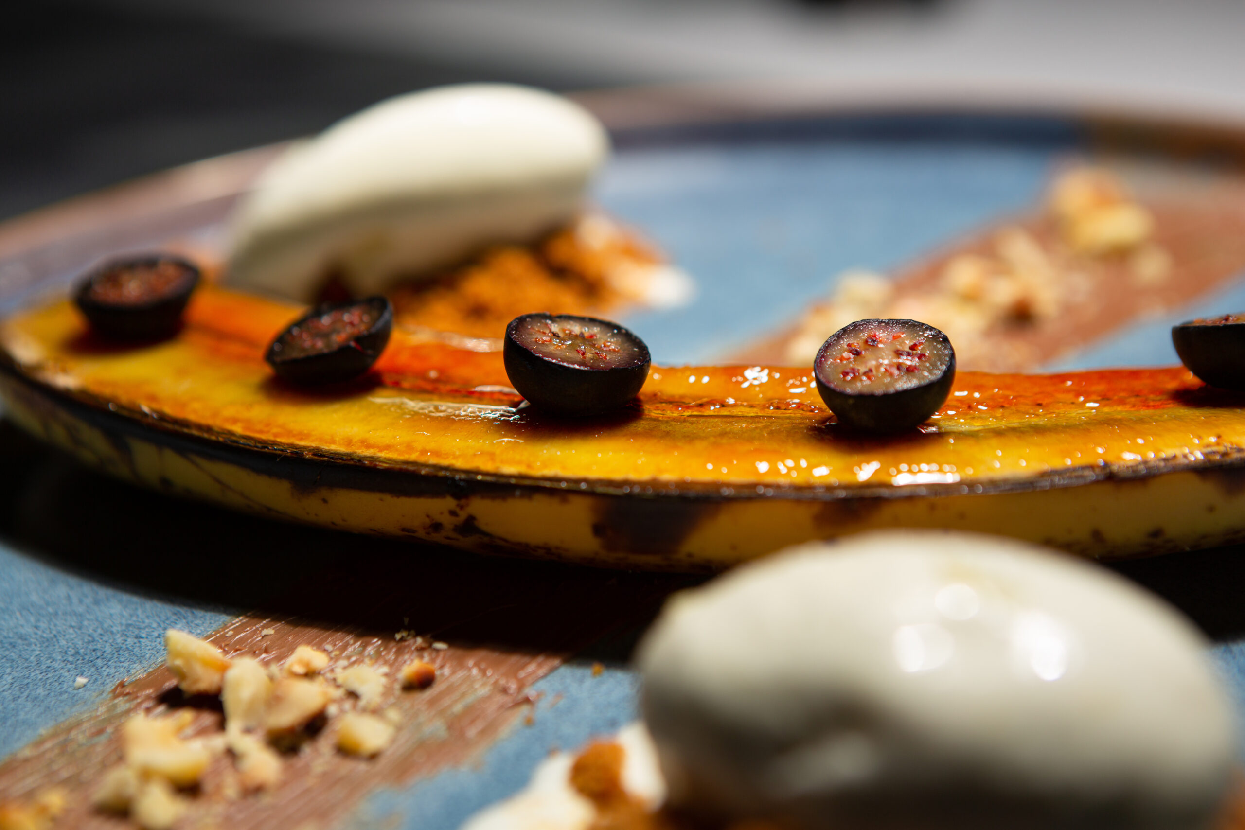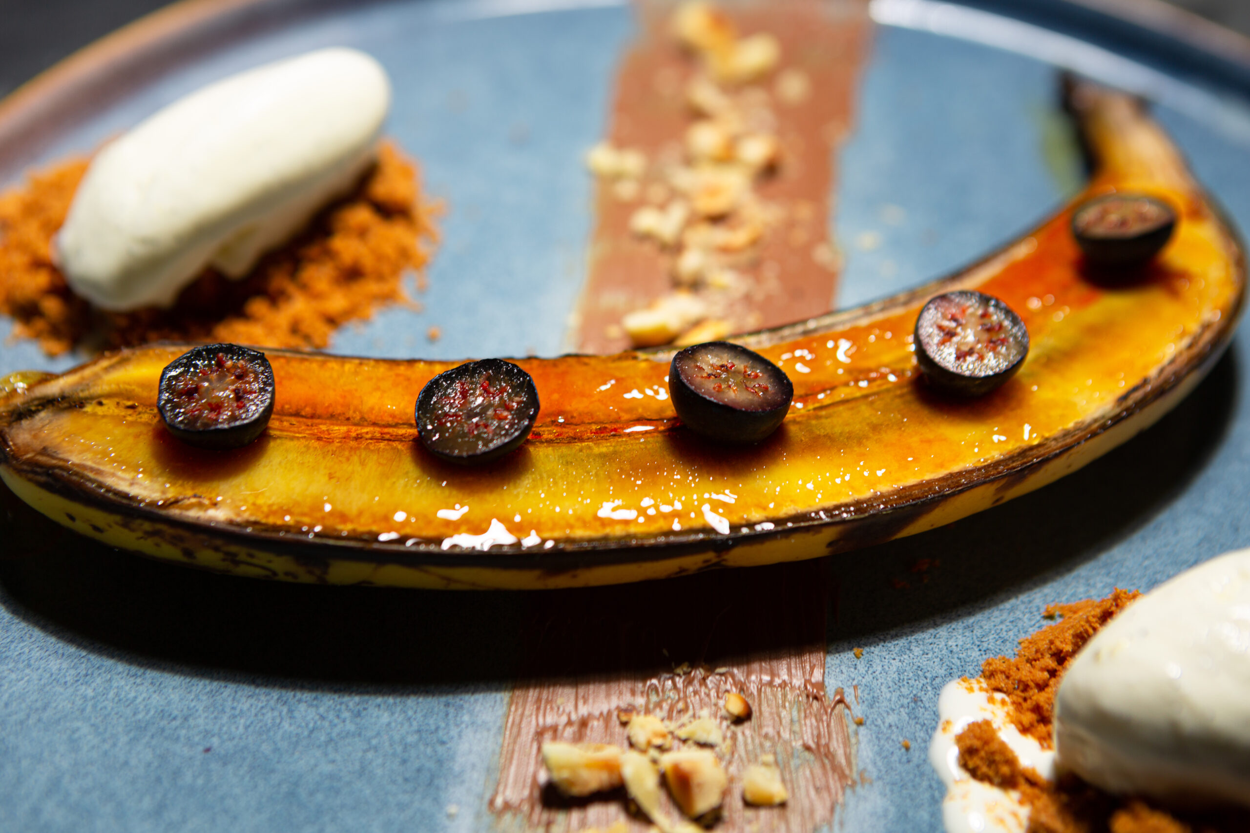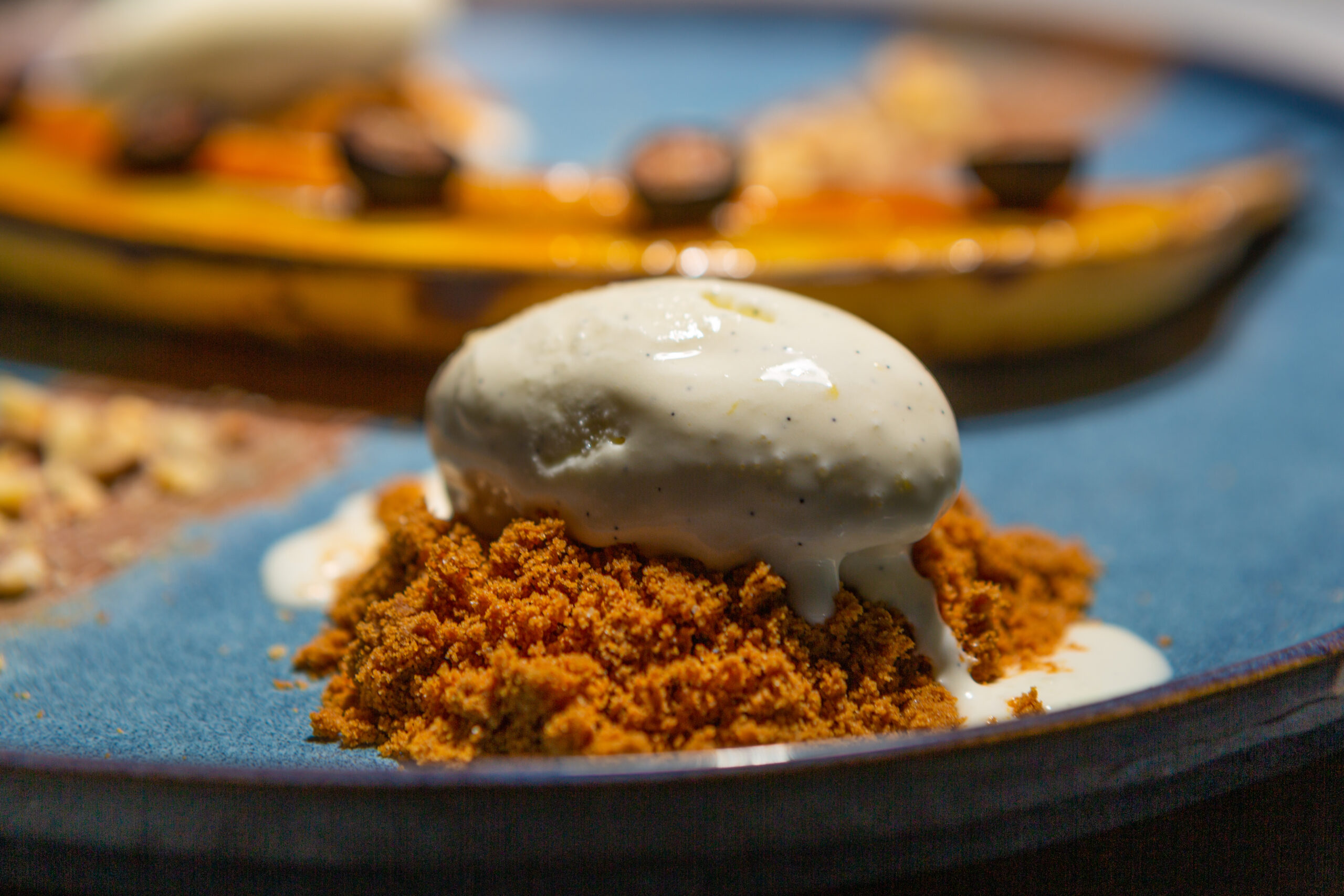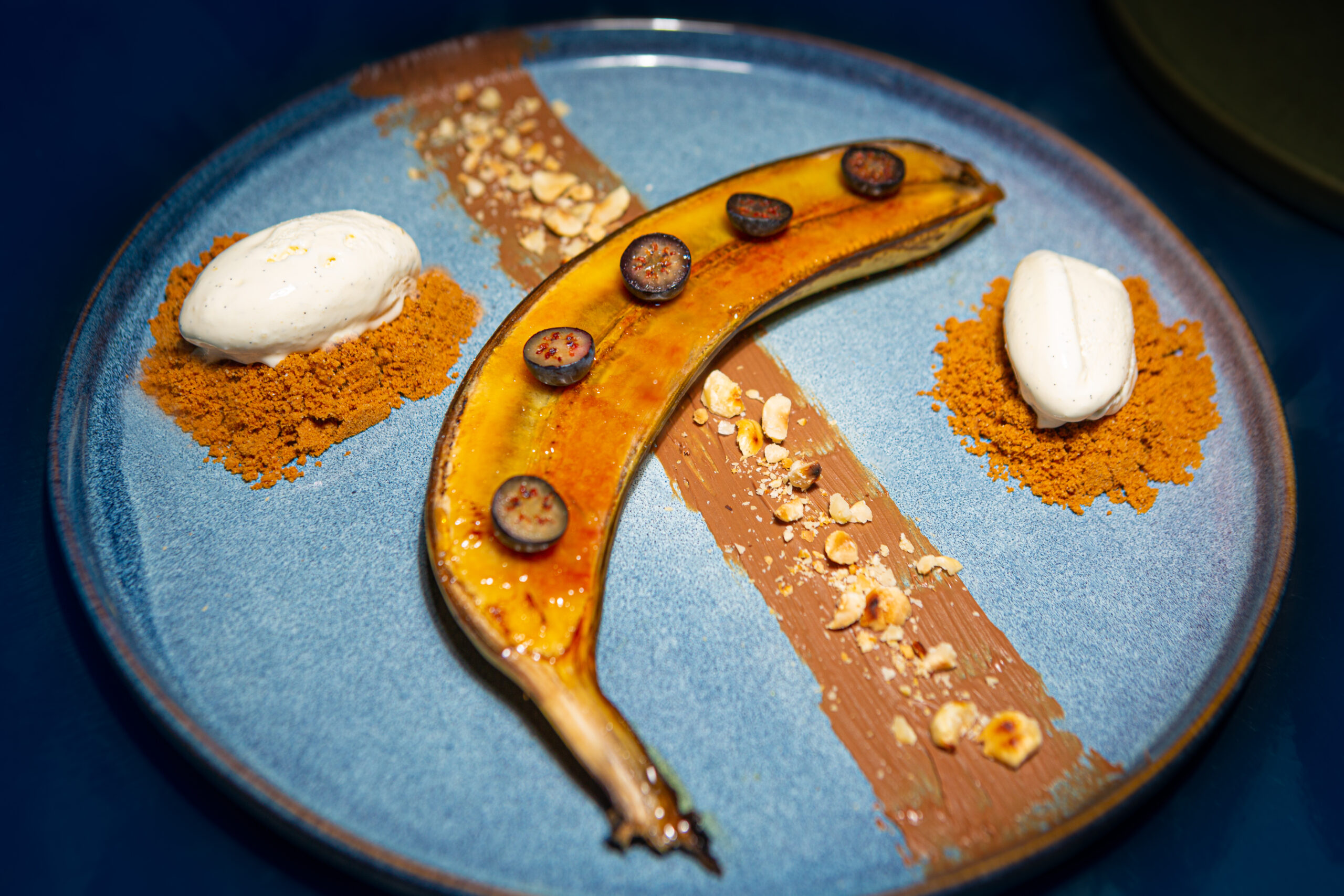 Banane caramélisée, myrtille, noisettes grillées x Spéculoos & Glace vanille