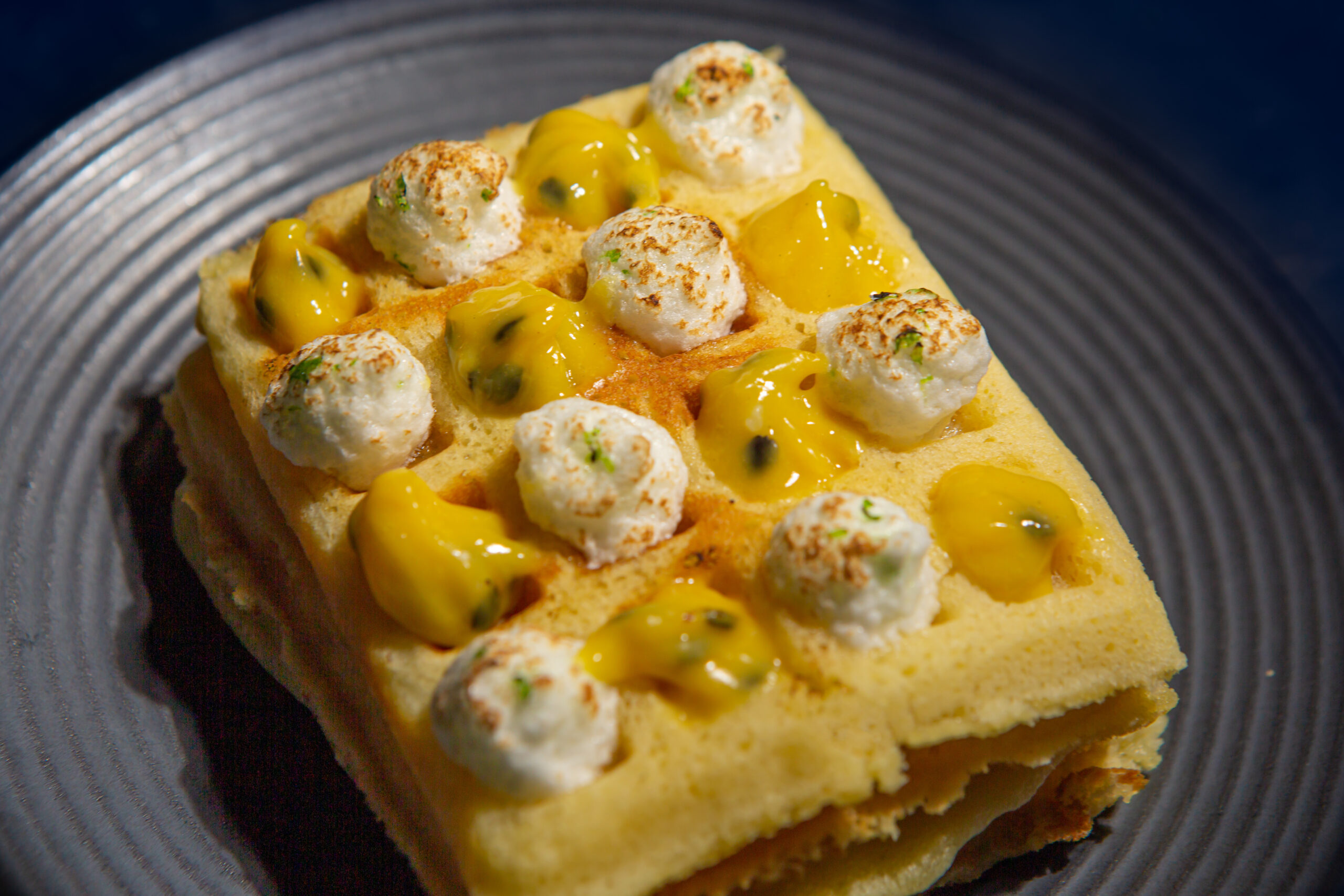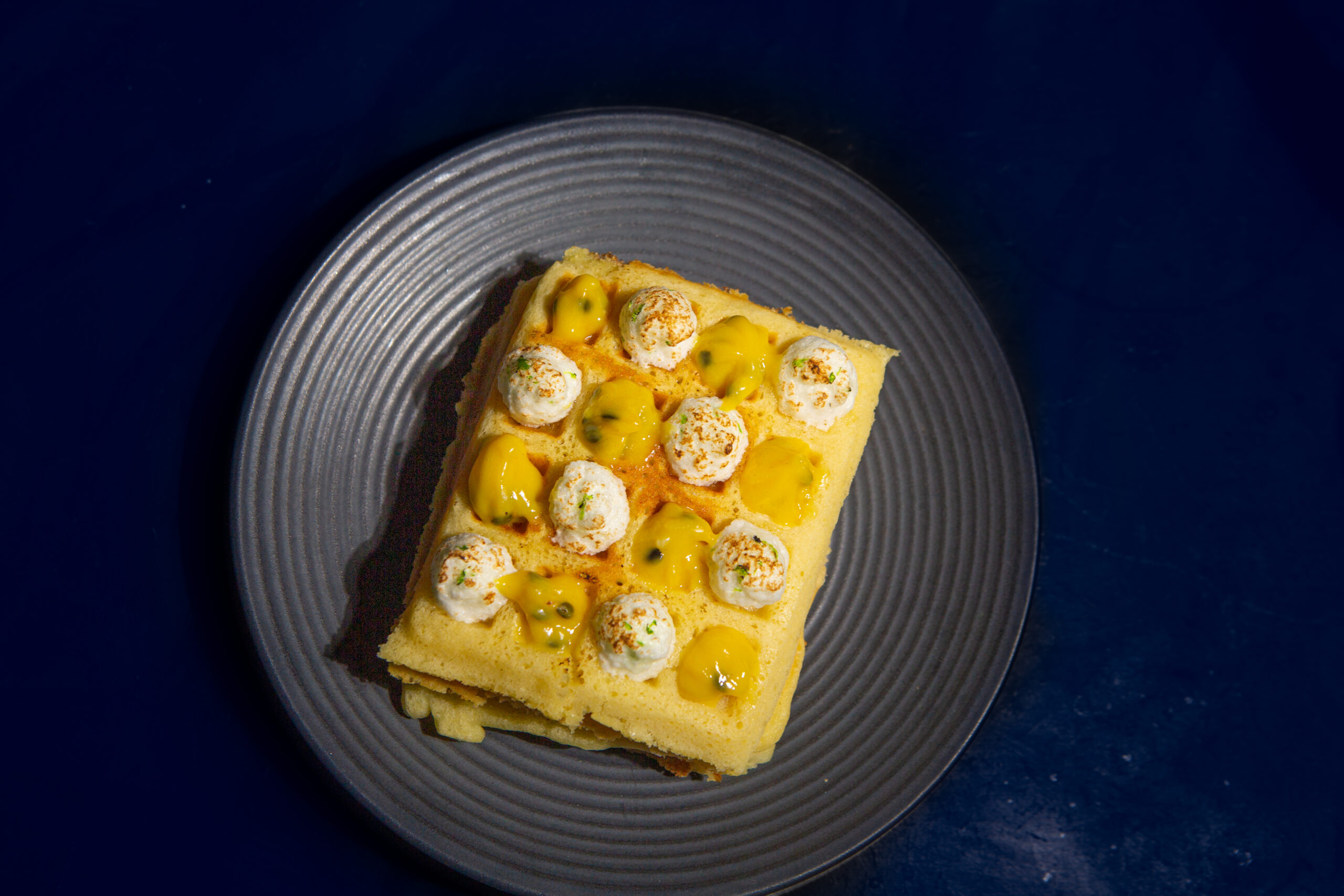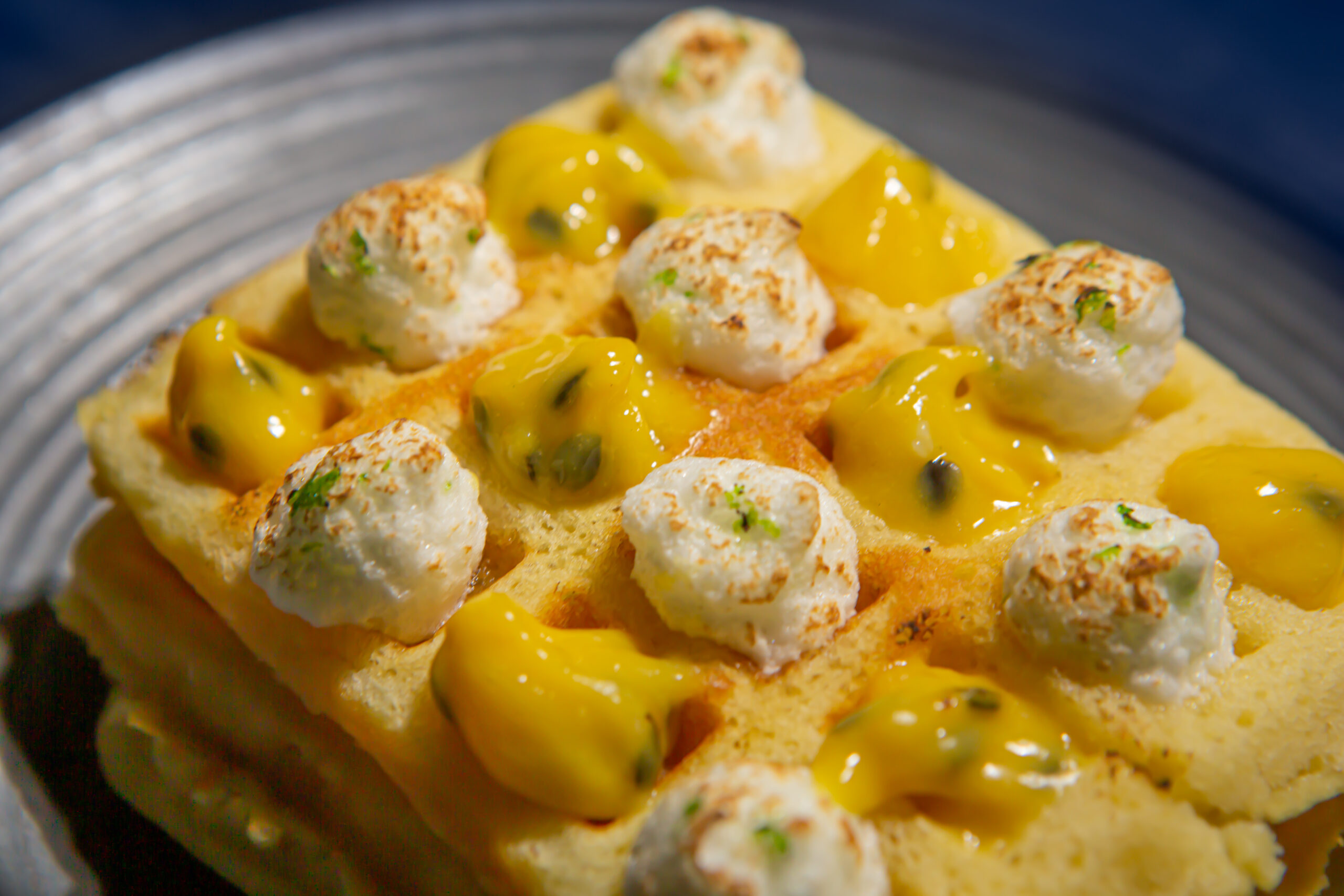Petite recette ludique qui aura toute sa place dans vos futurs brunchs, avec ces gaufres qui imitent la célèbre tarte au citron meringuée.